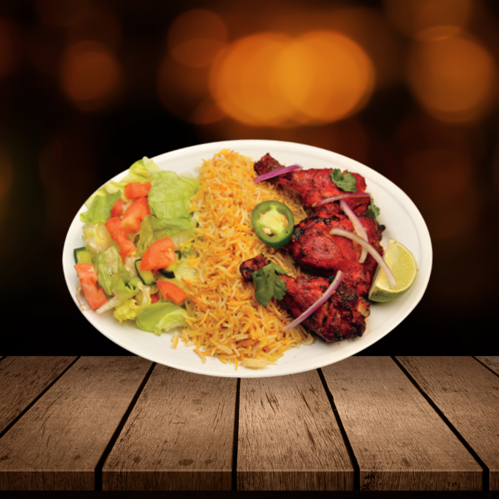 pieces of bone-in chicken, marinated in special herbs over grill.