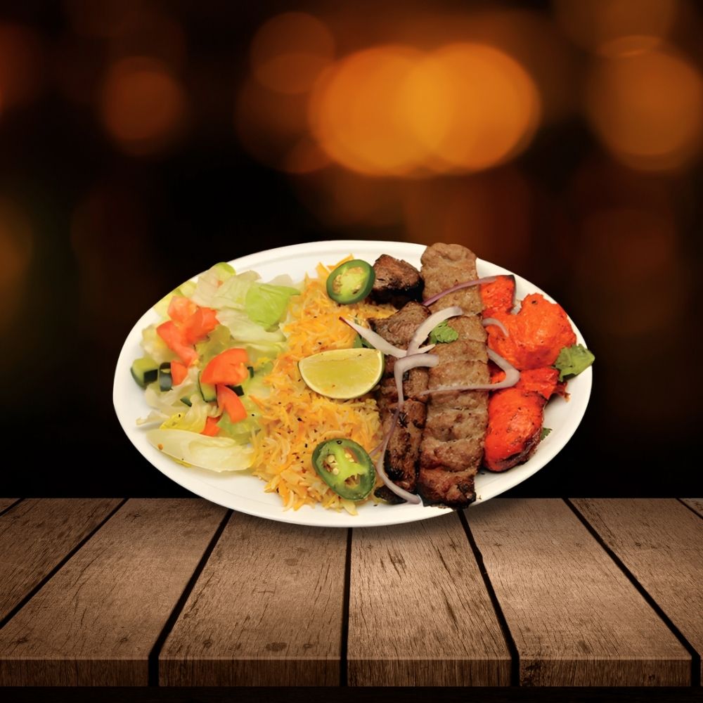Combination of Chicken, Kobidah ground beef and Lamb Kabob.